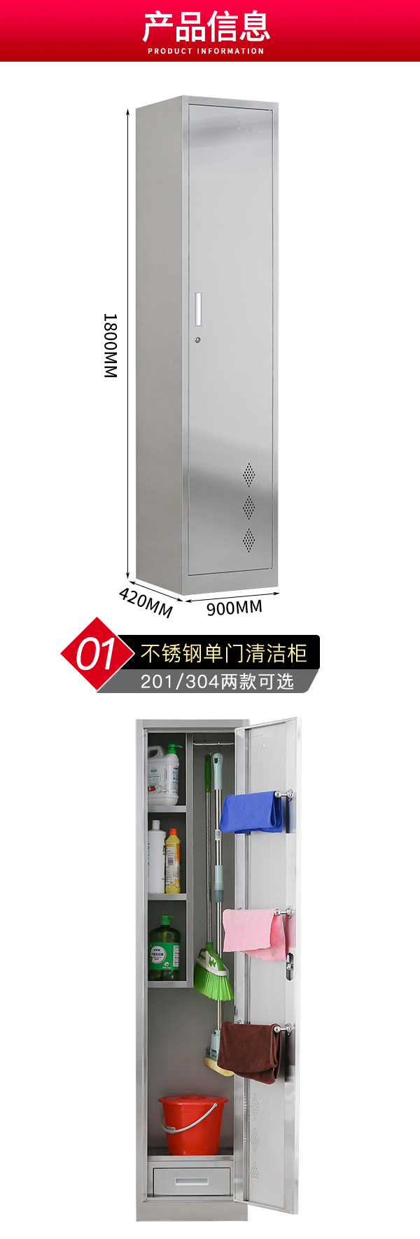 不銹鋼清潔柜單門
